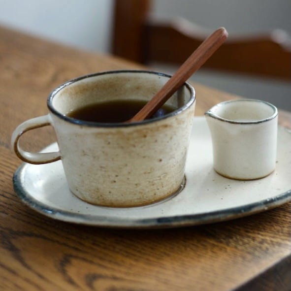 釉薬のムラや焦げ、鉄粉による黒点など、一枚ごとに異なる表情を持ち、まるで一点もののような存在感を楽しめ、プレートにはカップを置くための「レスト(小さな凹み)」が施されており、丁寧に淹れたコーヒーカップとお菓子を並べるだけで自宅のティータイムがカフェのような雰囲気になります。