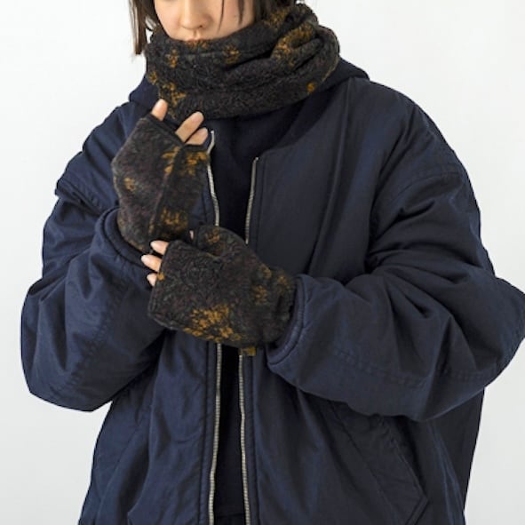 本来はプリントで描かれるアール・ヌーボー様式の緻密な花柄や幾何学模様、ペイズリー柄を、ボアで表現することで、柔らかな色合いと曖昧なニュアンスが生まれ、どんなスタイルにも自然に馴染むアイテムに仕上がりました。