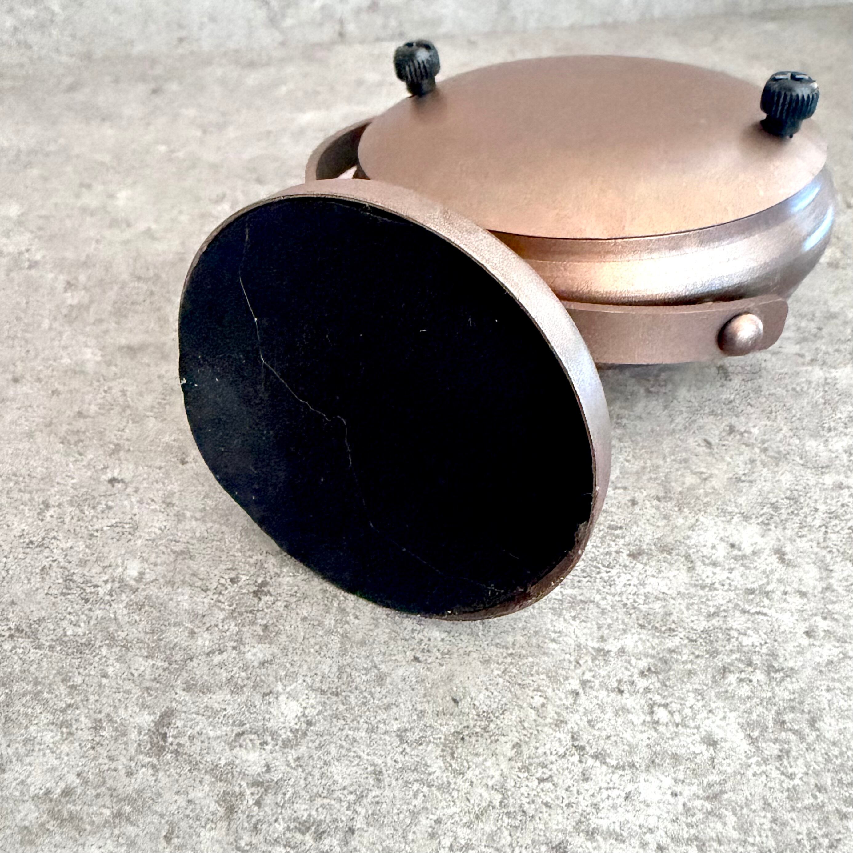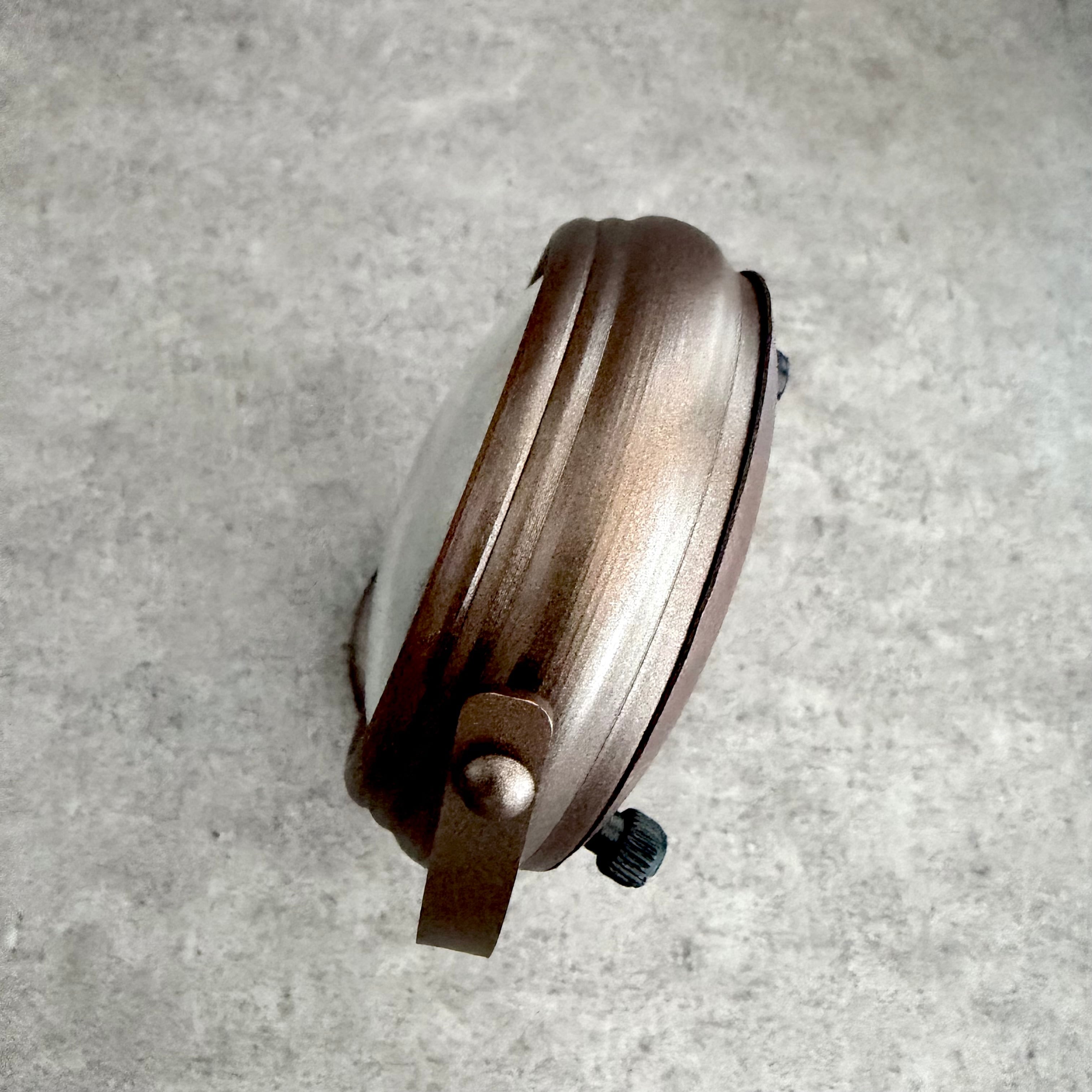 落ち着きのあるカッパーカラー(銅色)仕上げで、本体にはあえてヴィンテージ感を施し、クラシカルな雰囲気を演出しています。どこか懐かしさを感じさせながらも、現代のインテリアに自然と溶け込むデザインです。