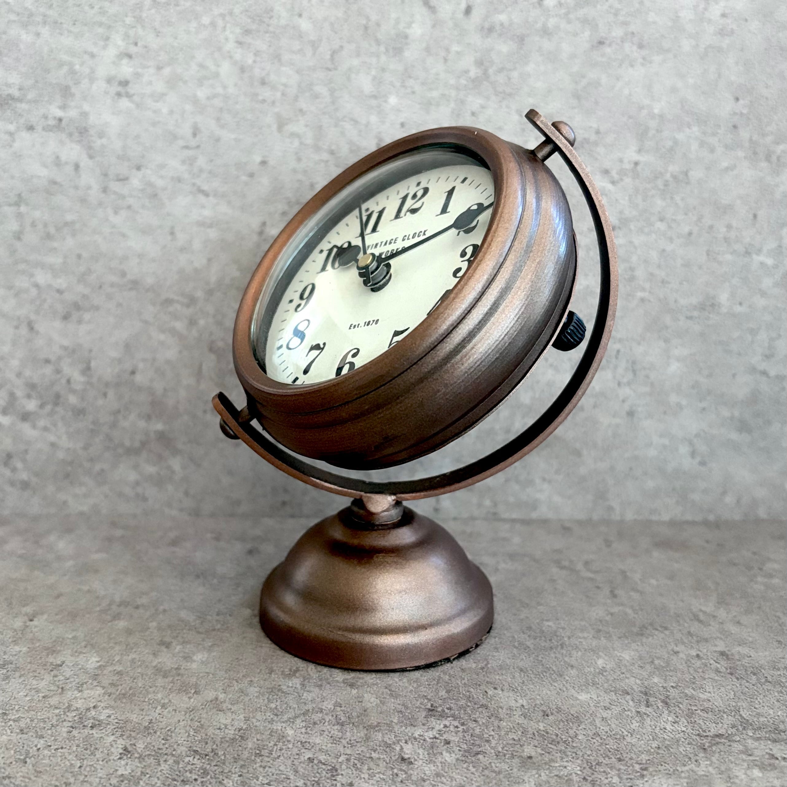 文字盤にはガラスを使用しており、コンパクトながらも空間のアクセントになる存在感があります。文字盤の角度も上下に調節できます。