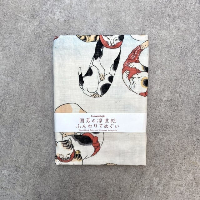 江戸時代後期の浮世絵師として知られる歌川国芳氏の猫に対する愛情と誰もが思わず微笑んでしまうユーモアがつまった猫モチーフの手ぬぐいです。