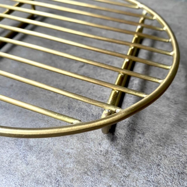熱々のお鍋をそのまま食卓に出す際のマット代わりやグラスの水切り、 キッチンでのジェルボトル置き、お菓子プレートなど、 いろいろ活躍するワイヤースタンドです。