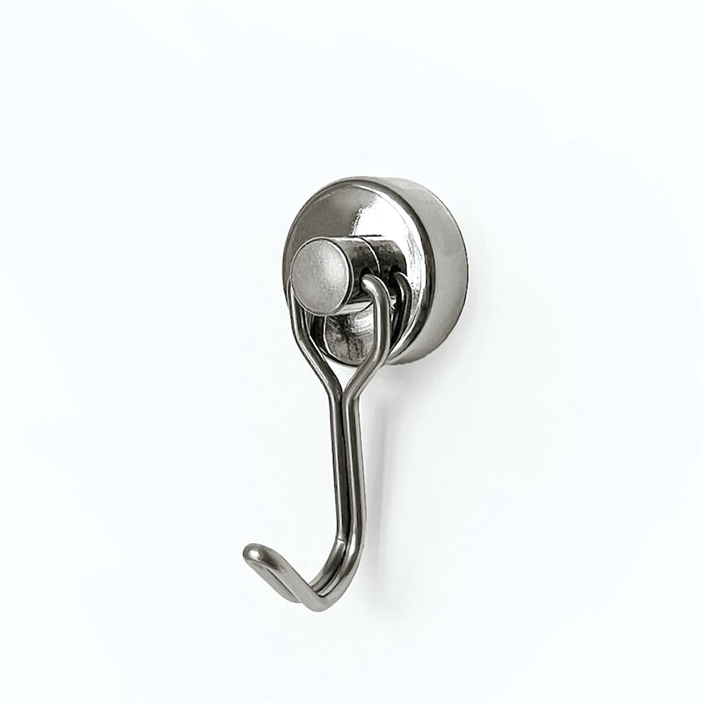 このマグネットフックは、直径2cm、全長4.5cmと非常にコンパクトですが、通常の磁石の10倍以上の磁力を持つ「ネオジム磁石」を使用しているため、その耐荷重は最大10kg(垂直向き使用時)にも及びます。
